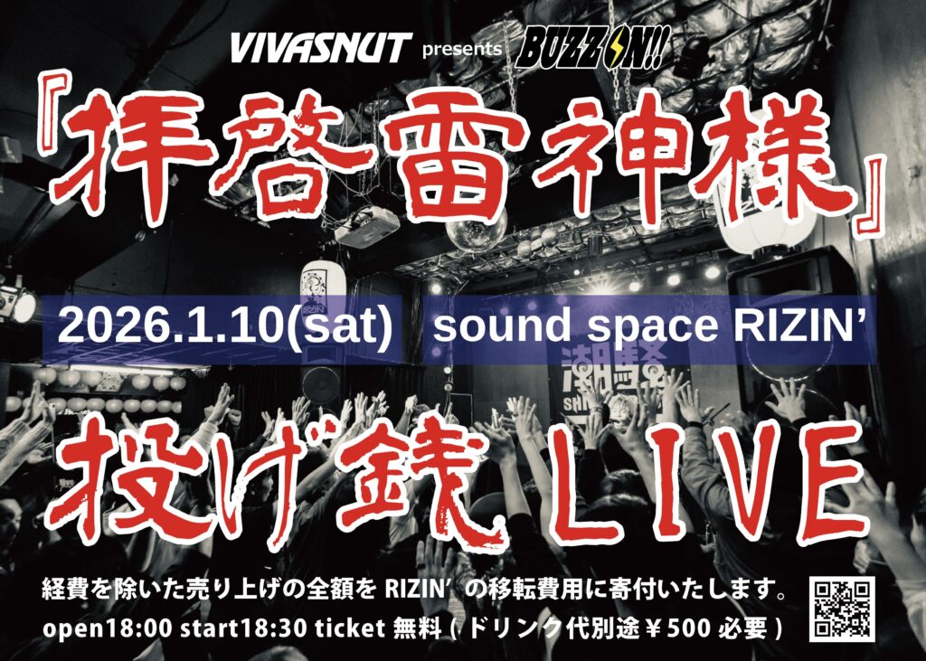 投げ銭ライブで、経費を除く売り上げの全額を高松RIZIN’の移転費用にあてさせていただきます。