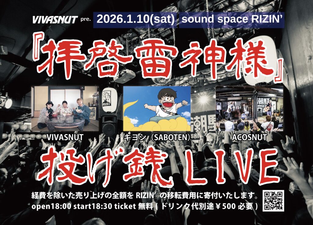 open 18:00 / start 18:30 チケット 無料 ※投げ銭ライブ(ドリンク代500円別途必要)