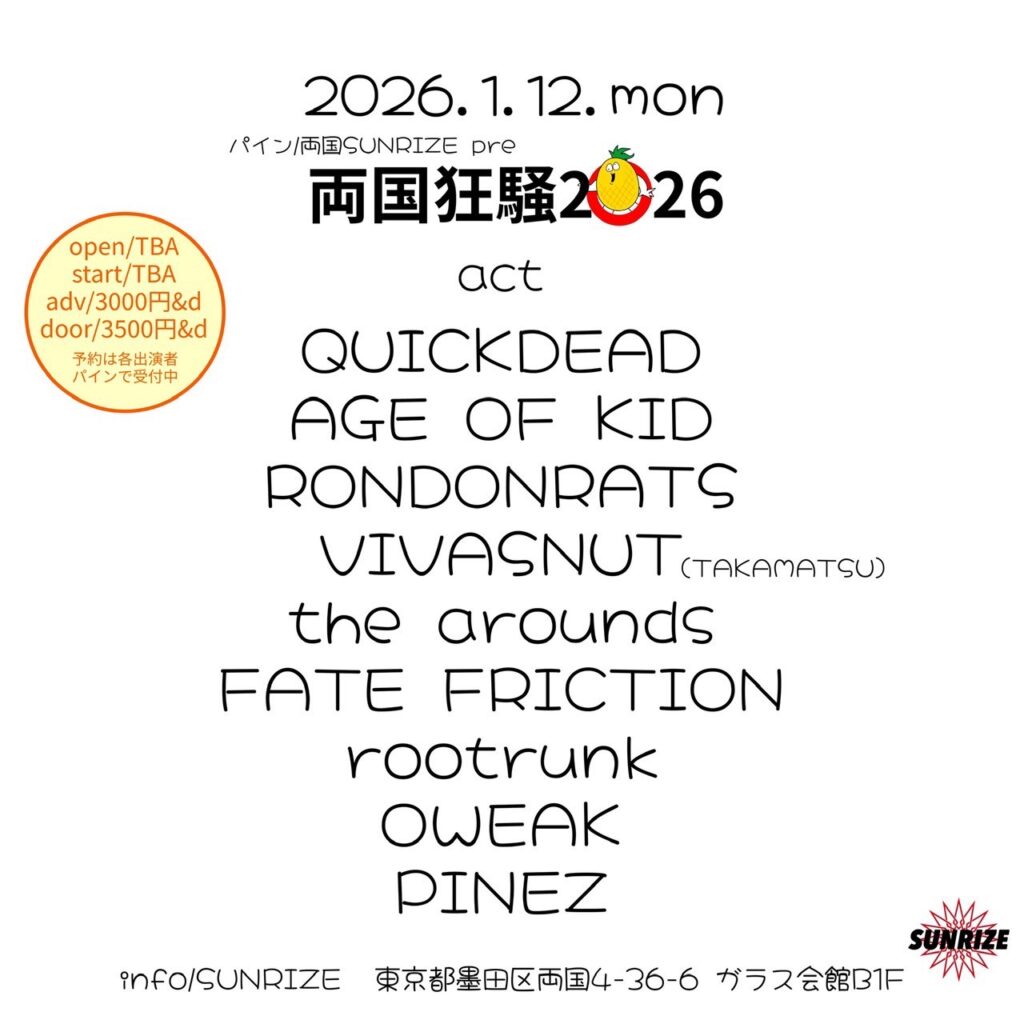 w/ OWEAK / QUICKDEAD / AGE OF KID / RONDONRATS / the arounds / FATE FRICTION / rootrunk / PINEZ